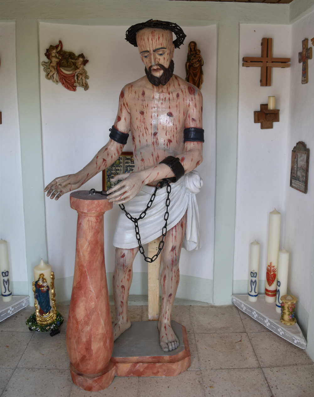 Die Figur ist zuletzt in einem beklagenswerten Zustand gewesen, ehe sie im Oktober des vergangenen Jahres im Auftrag der Stadt Ingolstadt dem Ingolstädter Kirchenmaler und Künstler Fredi Neubauer zur Restaurierung übergeben wurde. Nach einem halben Jahr mit unzähligen Arbeitsstunden wurde die Holzplastik heute wieder ihrer Bestimmung zugeführt. Der Sage nach wurde das Abbild des gegeißelten Heilands vor mehreren hundert Jahren durch ein gewaltiges Hochwasser angeschwemmt und fand dann in der 1752 geweihten und inzwischen unter Denkmalschutz stehenden Kapelle St. Wendelin im Süden Irgertsheims seinen angestammten Platz. Historisch gesichert ist jedenfalls, dass es sich beim Irgertsheimer „Wiesherrle“ um eine Nachbildung der berühmten Christusfigur in der Steingadener Wieskirche im Pfaffenwinkel handelt.