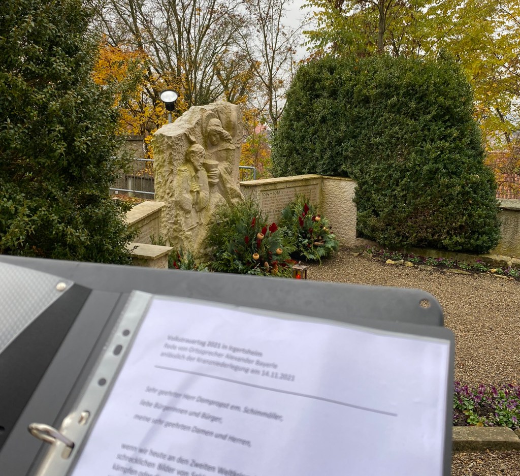 für alle, die am heutigen Volkstrauertag nicht bei der Kranzniederlegung am Irgertsheimer Kriegerdenkmal dabei sein konnten, gibt es die Möglichkeit, meine Rede noch einmal nachzulesen.
