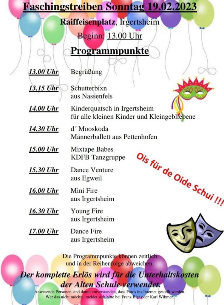 Herzliche Einladung zum Faschingstreiben 2023 24. Januar 20237. Februar 2023 / A. Bayerle / Hinterlasse einen Kommentar