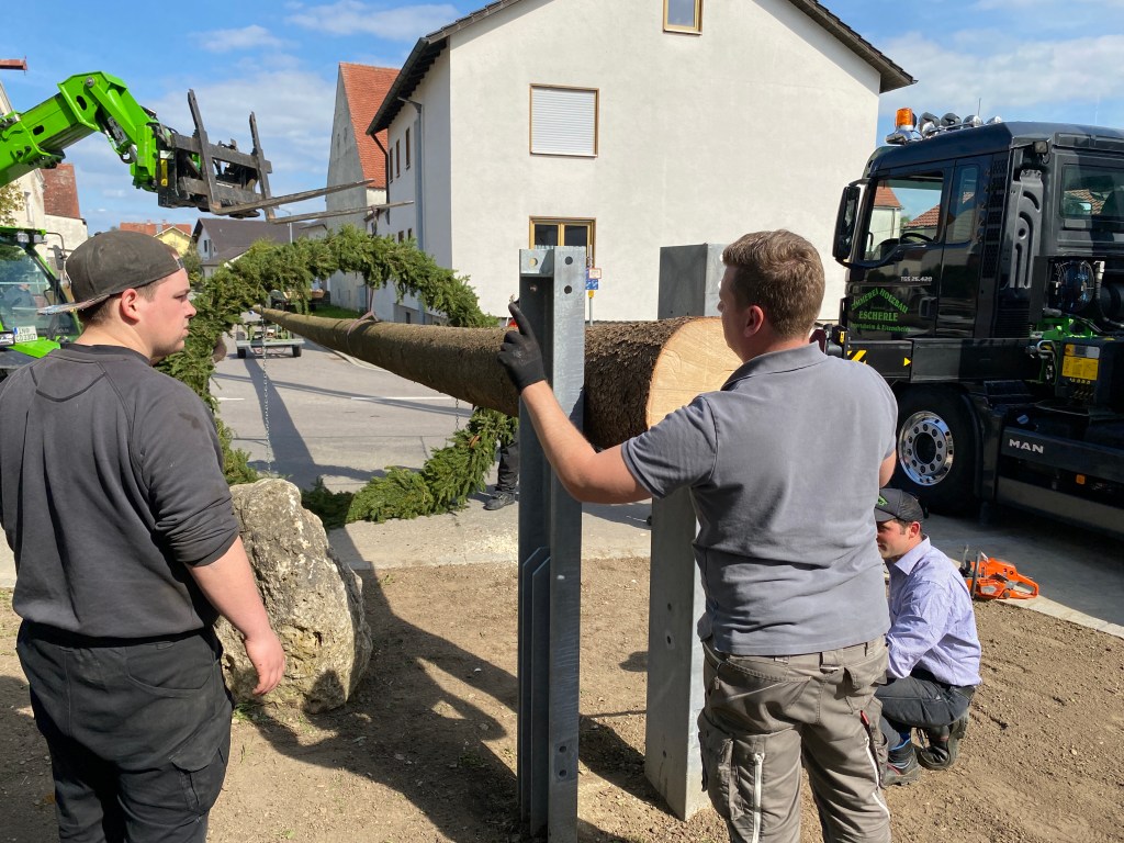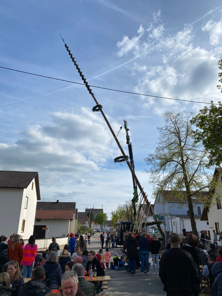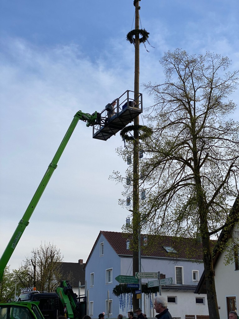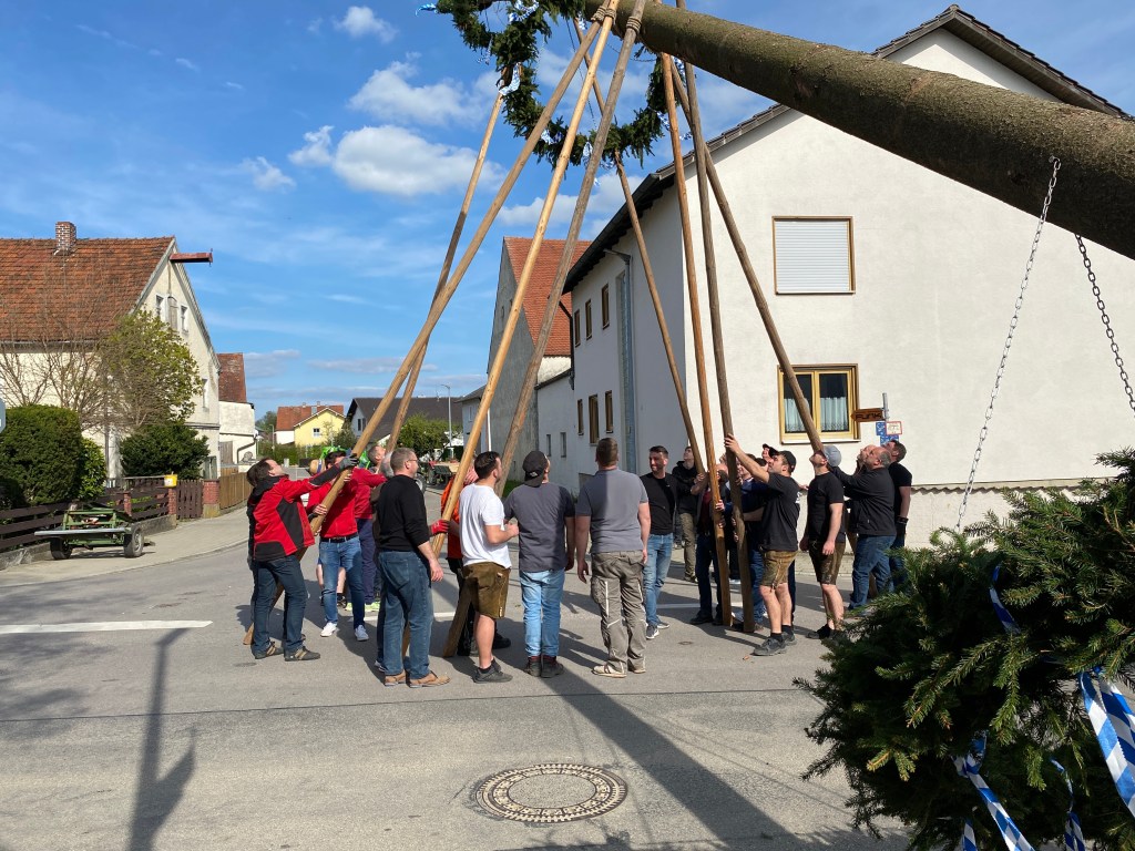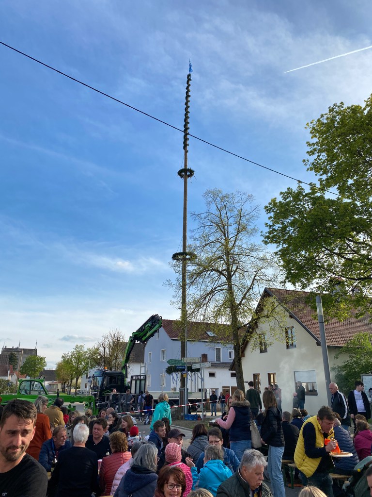 Irgertsheim hat wieder einen markanten Mittelpunkt: Der Maibaum 2023 steht.