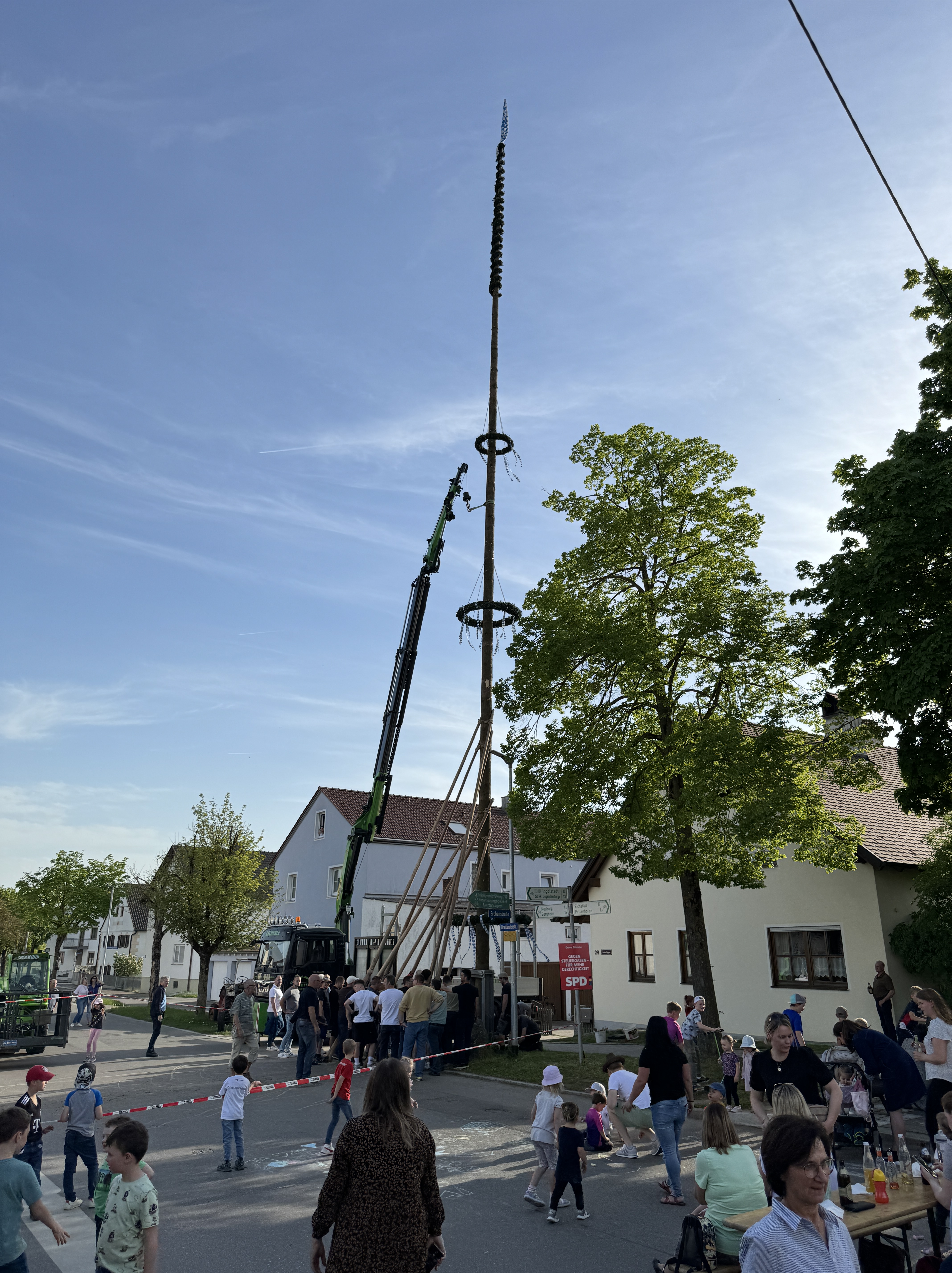 Der Irgertsheimer Maibaum 2024 steht. Im Rahmen eines schönen Fests, das bei traumhaftem Wetter an der Dorfmitte stattfand, konnten zahlreiche Besucherinnen und Besucher dem traditionellen Aufstellen des Baums beiwohnen. An dieser Stelle bedanke ich mich – auch in Namen der Stadt Ingolstadt – bei allen Helferinnen und Helfern sowie Gästen, die dazu beigetragen haben, dass dieses Brauchtum in unserem Stadtteil fortbesteht.