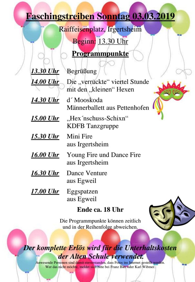 Ab sofort finden Sie unter der Rubrik Termine bzw. direkt hier zum Herunterladen (Terminliste Frühjahr 2019) die aktuelle Terminliste (Stand: 15. April 2019) für die Ortsteile Irgertsheim, Pettenhofen, Mühlhausen sowie Dünzlau.