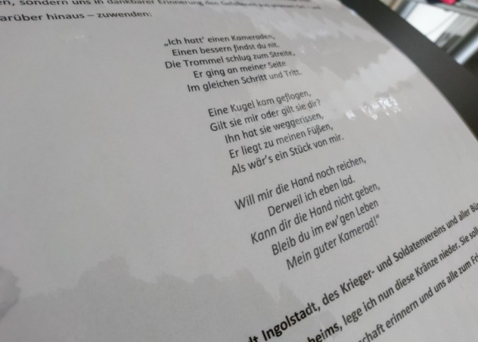 für alle, die am heutigen Volkstrauertag nicht bei der Kranzniederlegung am Irgertsheimer Kriegerdenkmal dabei sein konnten, gibt es die Möglichkeit, meine Ansprache noch einmal nachzulesen. Vielen Dank an die Fahnenabordnungen des Krieger- und Soldatenvereins, der Freiwilligen Feuerwehr sowie des SC Irgertsheim. Mein besonderer Dank geht an alle, die die Gedenkfeier wieder in großartiger Weise organisiert haben. Ein herzliches Vergelt’s Gott für die würdige kirchliche Umrahmung geht an Herrn Diakon Jonas Reißmann.